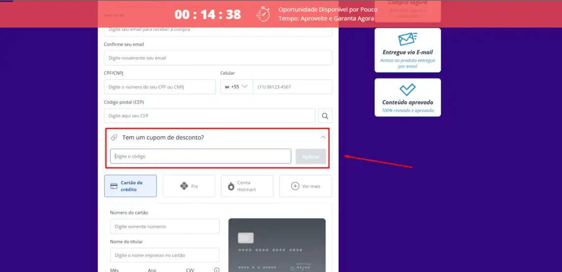 - Clique no botão “Aplicar” para o código ser aplicado ao pedido;