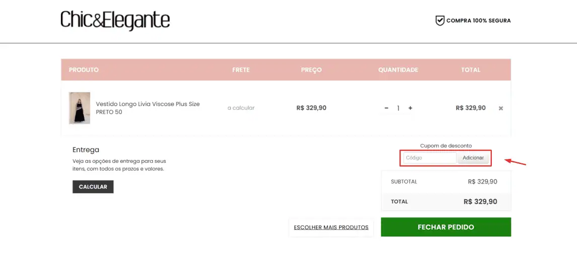 Onde inserir cupom de desconto Chic e Elegante