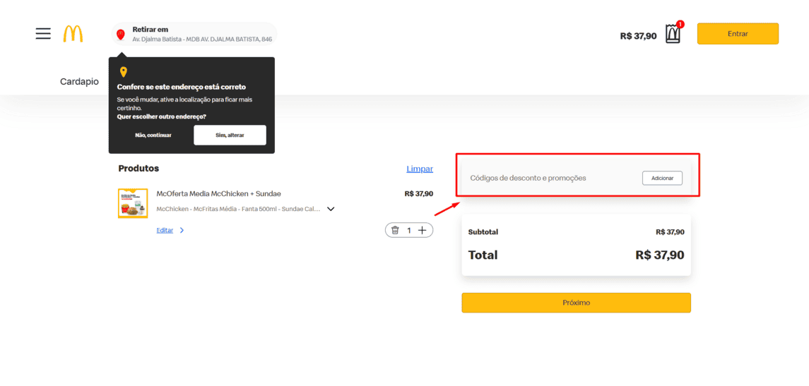 - Adicione o código copiado no campo de cupom da loja da McDonald s;