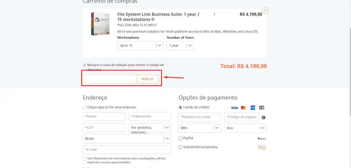 - Adicione o código copiado no campo de cupom da loja da Paragon Software Group;